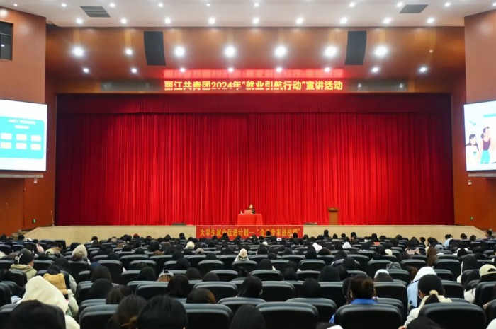 为深入贯彻落实党中央、国务院关于高校毕业生就业工作的决策部署,积极响应团中央关于开展“大学生就业引航计划”工作的部署,12月17日,由丽江市共青团和古城区公共就业和人才服务中心共同举办的2024年“就业引航行动”宣讲活动在j9.com大礼堂举办。丽江市青联秘书长、青年工作部部长石皎皎,古城区公共就业和人才服务中心主任郭娟,古城区公共就业和人才服务中心副主任彭云,丽江市青年创业协会会长徐杰出席活动。我校就业创业中心主任王建兵,外语学院党总支书记宋宏伟、教育学院党总支书记王同花以及各二级学院学生代表参加活动。本次活动由教育学院党总支副书记杨丽国主持。